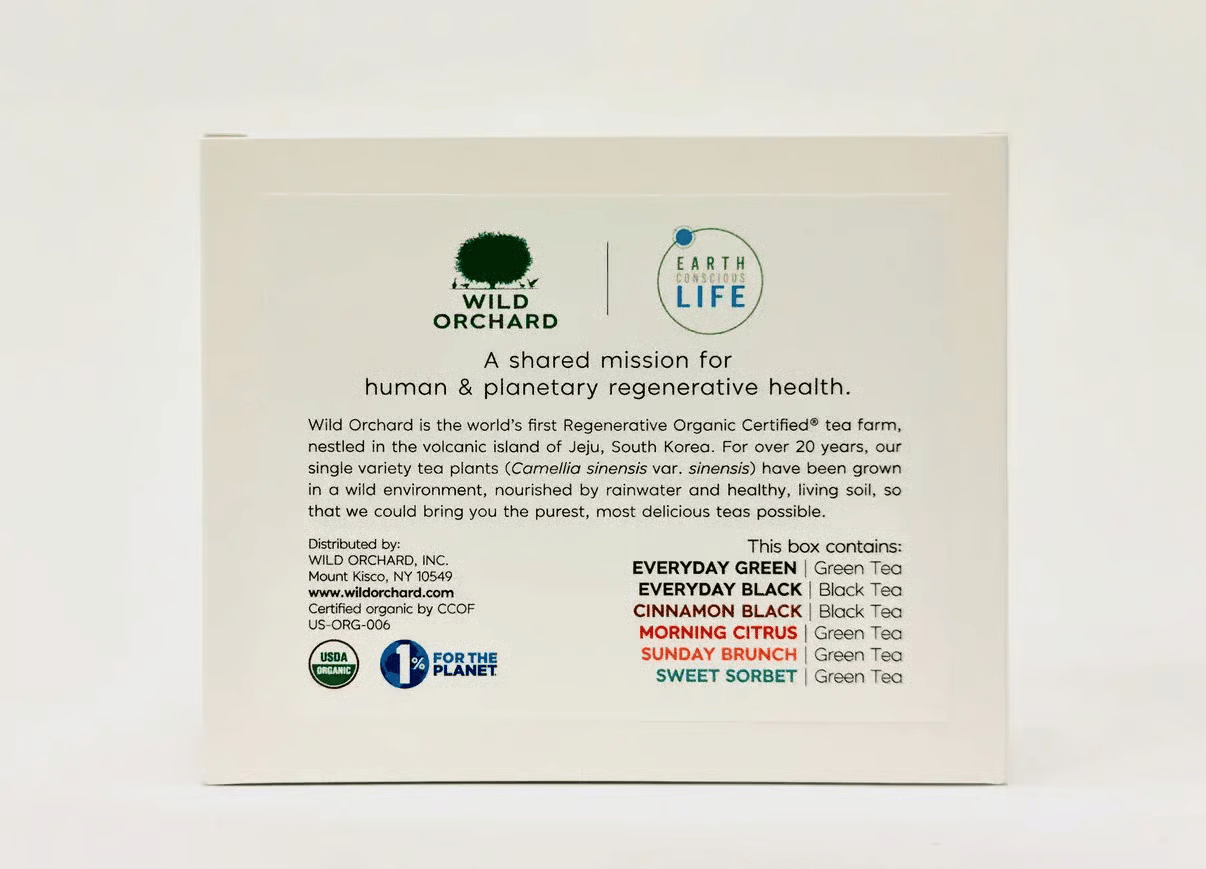 The world’s first certified regenerative tea farm, co-branded with Earth Conscious Life.